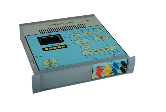 A Smart Energy Meter based on Analog Devices IC has been developed to build an Advanced Metering Infrastructure (AMI). The AMI system facilitates networking capability via GSM, ZigBee and ModBus. A Smart Energy Meter Development system has been developed by us, which consists of 1φ/3φ measurement section, a 32-bit ARM controller, wireless modules and powerful software. The student can completely understand the concept and usage of this trainer. This can be also used as one of the IOT server node.